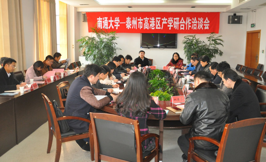 12月1日下午,南通大学——泰州高港区产学研合作洽谈会在我校举行。校地双方就科技合作、离岸孵化基地建设、科技镇长团工作等方面进行了深入的洽谈。副校长丁斐出席洽谈会并讲话。