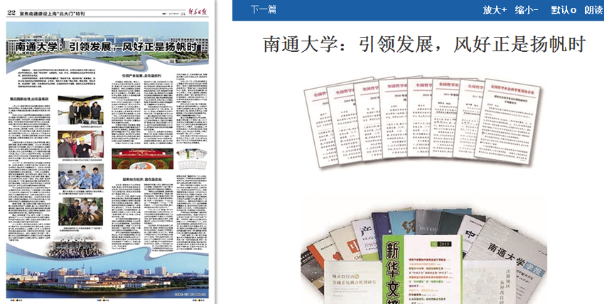 今天出版的《新华日报》在以聚焦南通建设上海“北大门”为主题的特刊,以《南通大学:引领发展,风好正是扬帆时》为题,全面介绍了我校社会服务的显著成效。