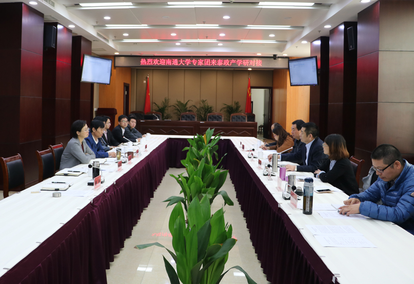 11月1日,校党委常委、总会计师姜佩剑率队赴泰兴市开展产学研合作工作。泰兴市委常委、副市长俞亚萍接待了姜佩剑一行。