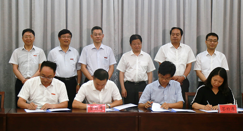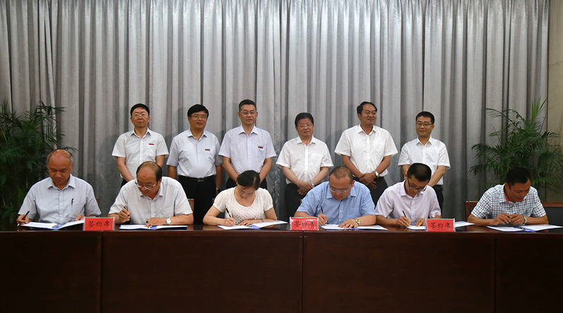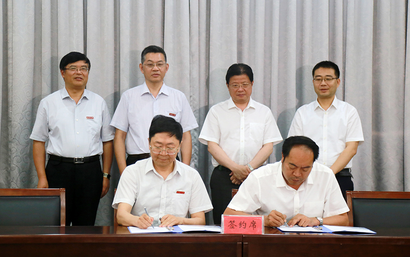 6月29日,南通大学—海安市产学研合作洽谈会在我校举行。校党委书记浦玉忠,校长施卫东,海安市市委书记顾国标出席会议。副校长丁斐主持会议。副校长蒋乃华与海安市副市长卢忠平代表校地双方签署“南通大学—海安市深化全面合作协议”。