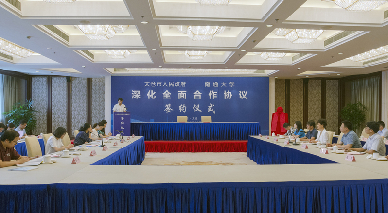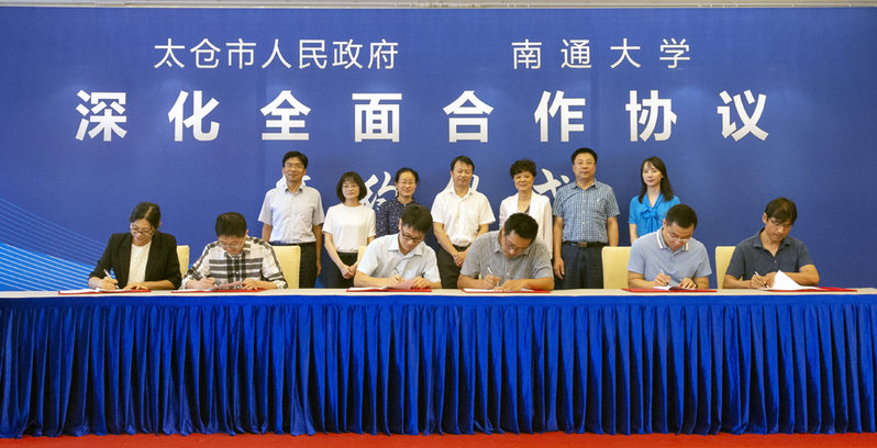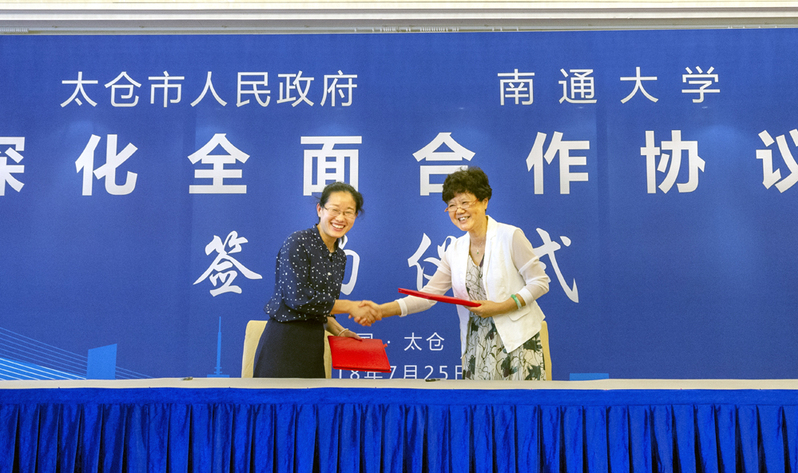 副校长丁斐与太仓市副市长高彬代表校地双方签署“南通大学—太仓市市深化全面合作协议”。