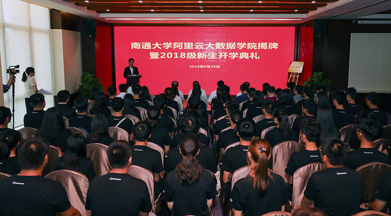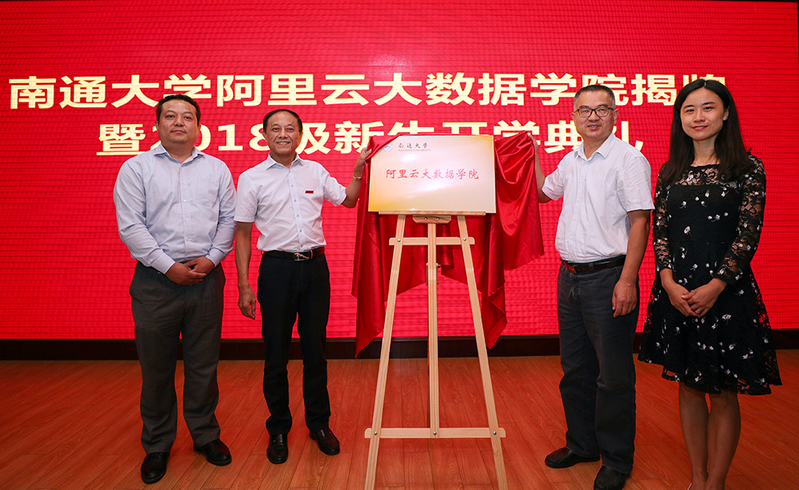 9月29日,我校举行阿里云大数据学院揭牌暨2018级新生开学典礼。校党委书记浦玉忠出席典礼并讲话。校党委副书记、副校长江应中,南通市港闸区常务副区长、南通市北高新区党工委书记冯斌,阿里云大学高校合作总监段少婷,青软实训教育科技股份有限公司副总裁李刚共同为学院揭牌。首批60名大数据专业学生参加开学典礼。