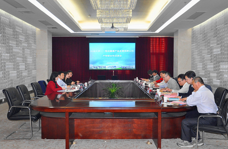4月18日下午,南通大学——悦达健康产业发展有限公司产学研合作洽谈会在我校举行。服务地方工作处副处长姚乐主持会议。