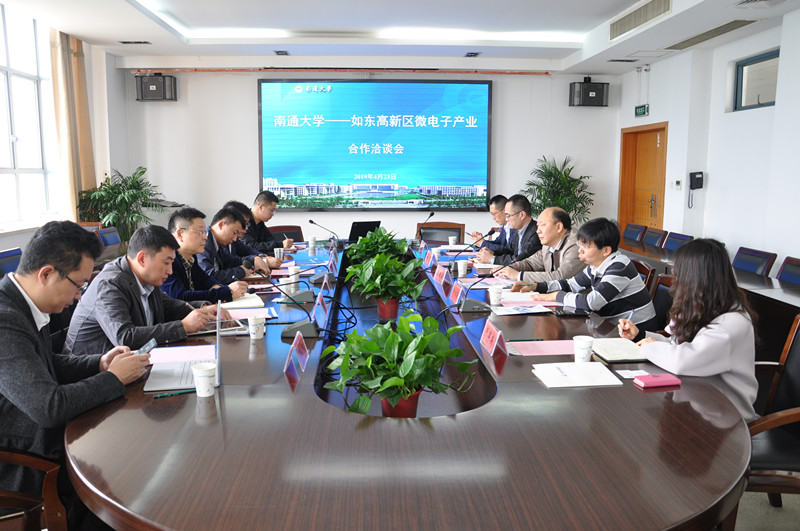 4月23日上午,南通大学——如东高新区微电子产业合作洽谈会在我校召开,双方就技术合作、成果转让、人才培养、学生就业等进行了深入交流。服务地方工作处副处长姚乐主持会议。