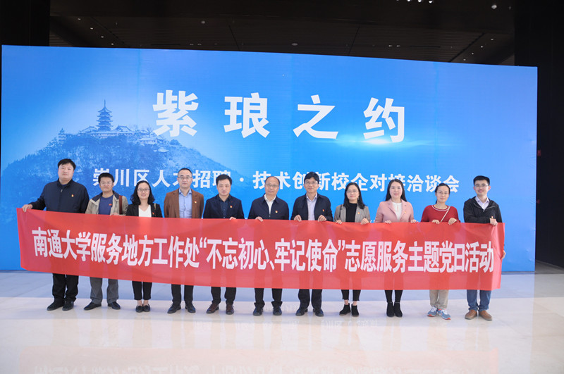 11月16日,紫琅之约——崇川区人才招聘·技术创新校企对接洽谈会在南通市中创区国际会议中心召开。校党委常委、副校长杨宇民率服务地方工作处党支部全体党员赴洽谈会现场开展“不忘初心、牢记使命”志愿服务主题党日活动。