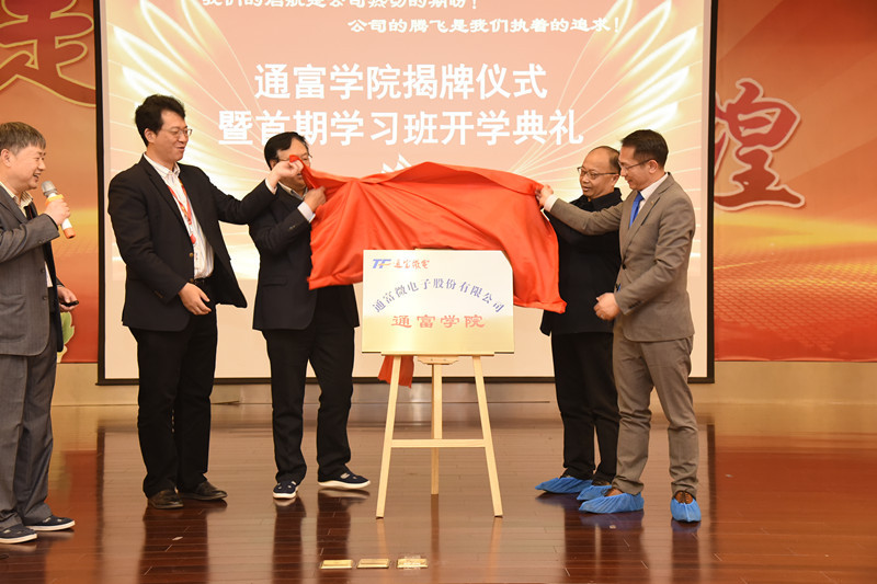 4月26日,我校组织专家前往通富微电子股份有限公司开展产学研合作洽谈。副校长杨宇民,通富微电董事长石明达、总裁石磊等共同为通富学院揭牌。通富微电120名学员参加开学典礼暨首届腾飞班、启航班开班仪式。