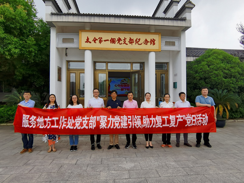 6月20日,服务地方工作处党支部赴太仓市开展“聚力党建引领 助力复工复产”主题党日活动,深入企业问需求、送服务,以实际行动助推企业复工复产。太仓市人民政府副市长、省第十二批科技镇长团太仓团团长邵建,苏州市万松电气有限公司董事长洪焕松,总经理洪振海出席产学研合作洽谈会。