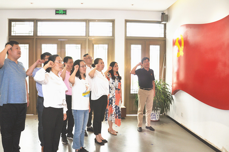 苏州市爱国主义教育基地——太仓第一个党支部纪念馆重温入党誓词。