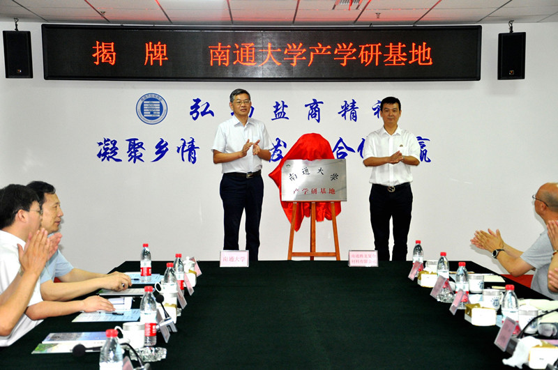 校党委书记浦玉忠、南通市盐城商会会长孙茂军共同为“南通大学产学研基地”揭牌。