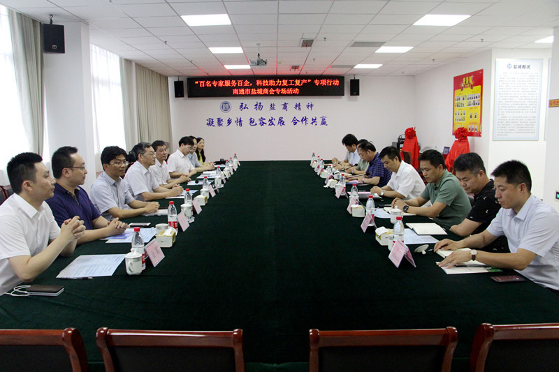 “百名专家服务百企 科技助力复工复产”专项行动走进南通市盐城商会。