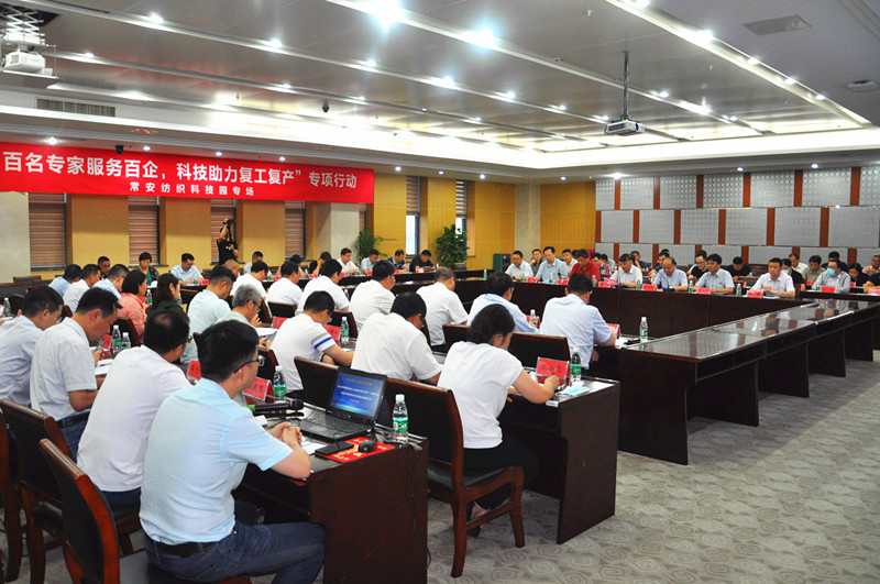 南通市科技局、海安市经济技术开发区、海安市生态环境局、常安纺织科技园相关负责人,我校办公室、服务地方工作处、纺织服装学院相关负责人和专家教授,以及常安纺织科技园30多家企业负责人参加活动。