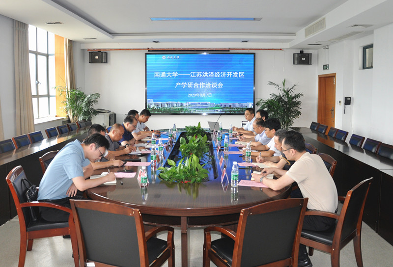 施妙生介绍了洪泽区经济社会发展的基本情况及洪泽经济开发区产业布局相关情况。他希望与我校在产学研方面展开深度合作,借助南通大学人才、技术优势,推动洪泽区高端纺织产业的高质量发展。