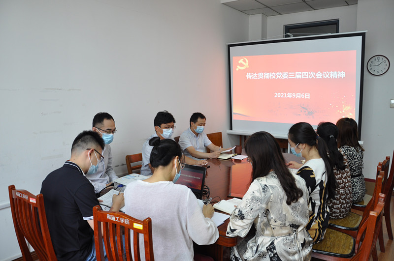 会议传达了校党委书记浦玉忠、校长施卫东在中共南通大学第三届委员会第四次全体(扩大)会议暨新学期工作会议上的讲话精神。